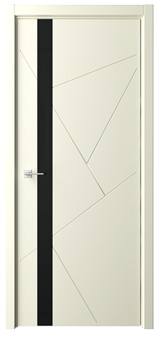 Дверь Геометрия-6 ширина 90 см Слоновая кость Эмаль Стекло черное кромка В цвет полотна в Калининграде