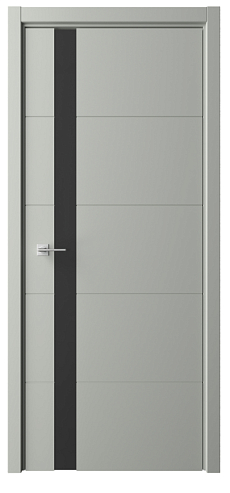 Дверь Геометрия-7 ширина 80 см Серый Эмаль Стекло черное кромка В цвет полотна в Калининграде